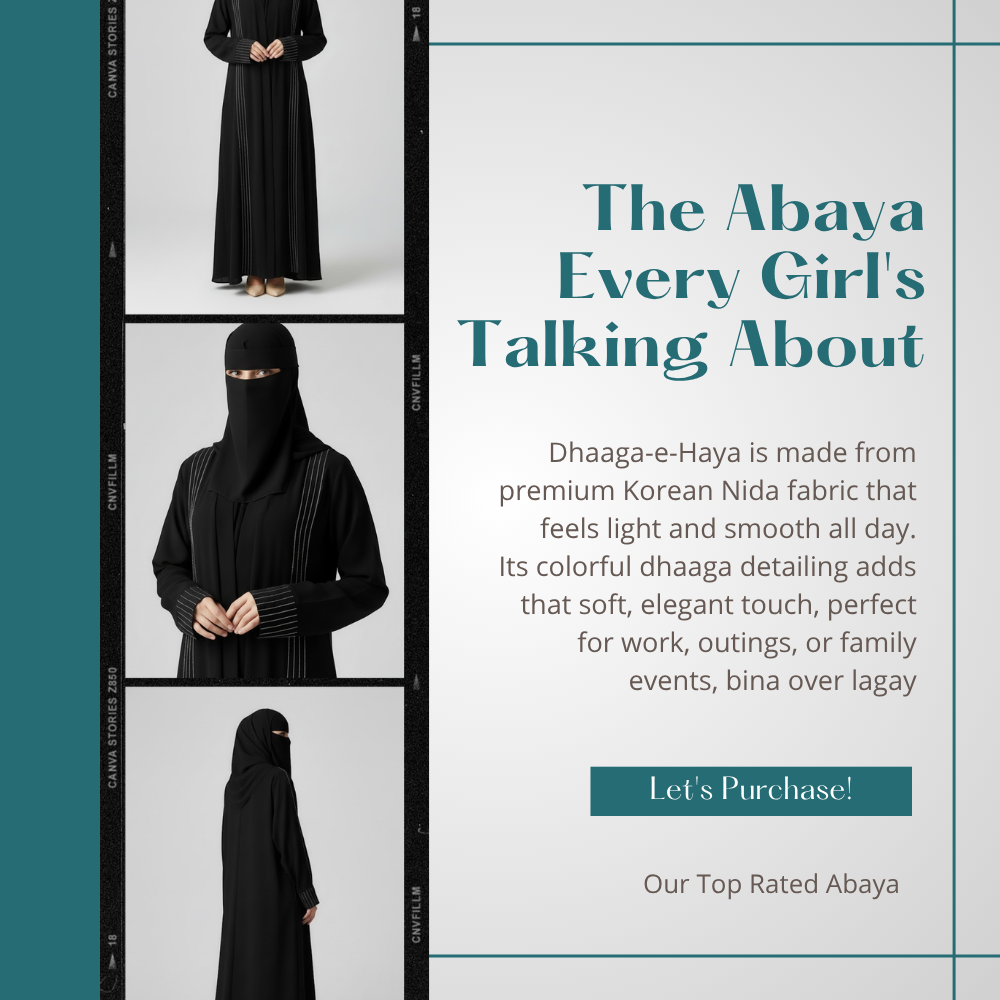 Dhaaga-e-Haya is made from premium Korean Nida fabric that feels light and smooth all day.