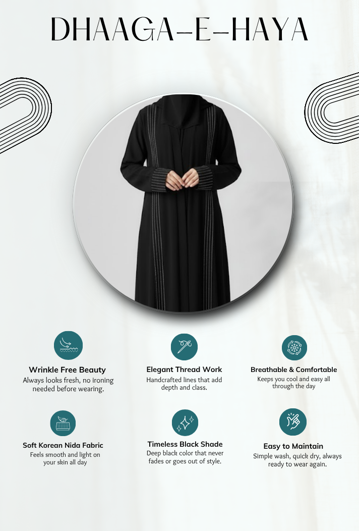 Dhaaga-e-Haya is made from premium Korean Nida fabric that feels light and smooth all day.