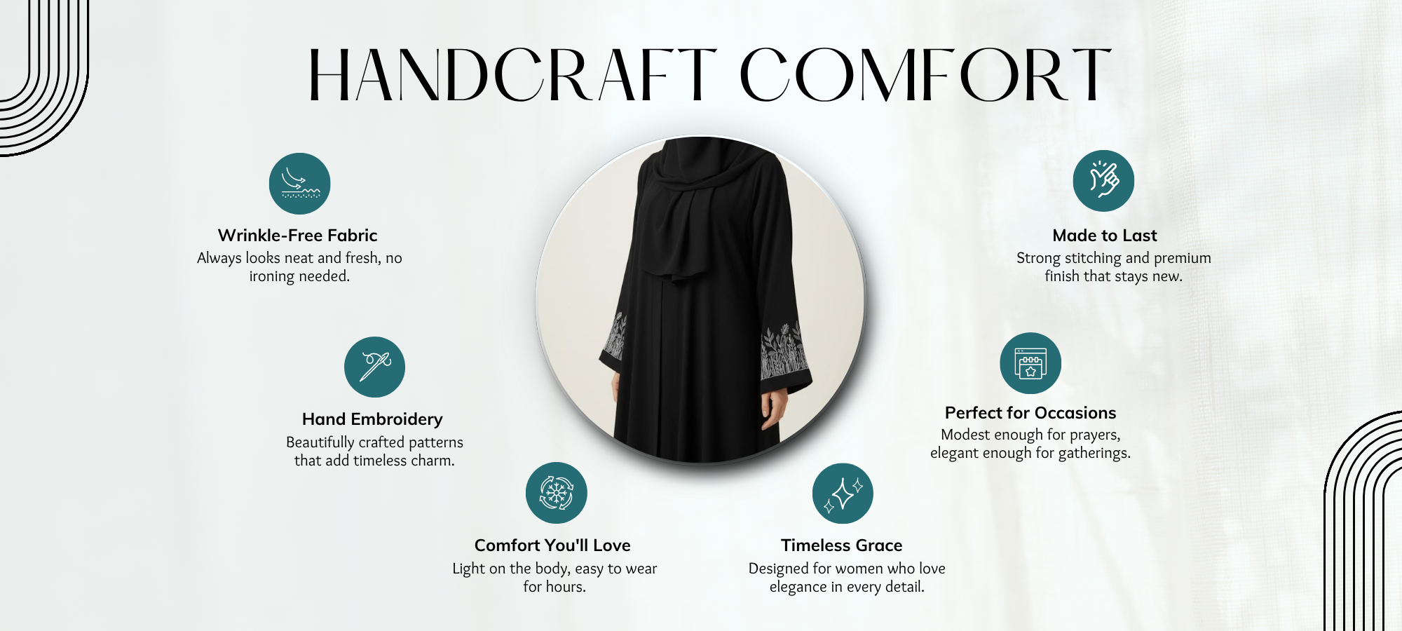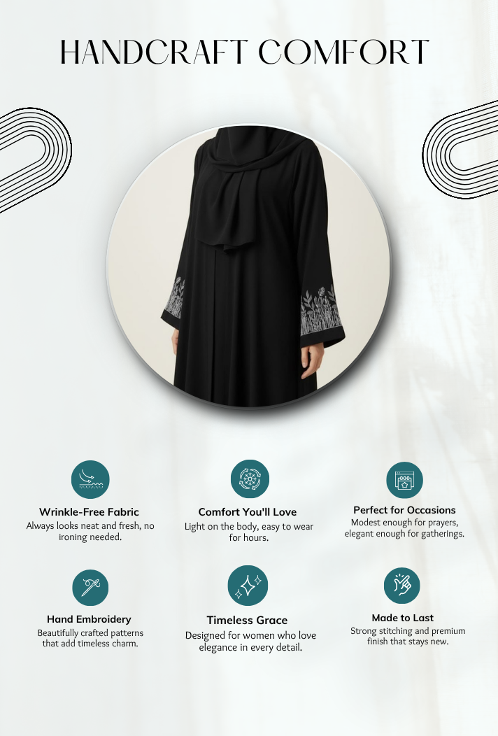 We get it. Some abayas feel rough, wrinkle easily, and lose their charm fast. You deserve something that moves with you, soft, flowy, and effortlessly elegant.